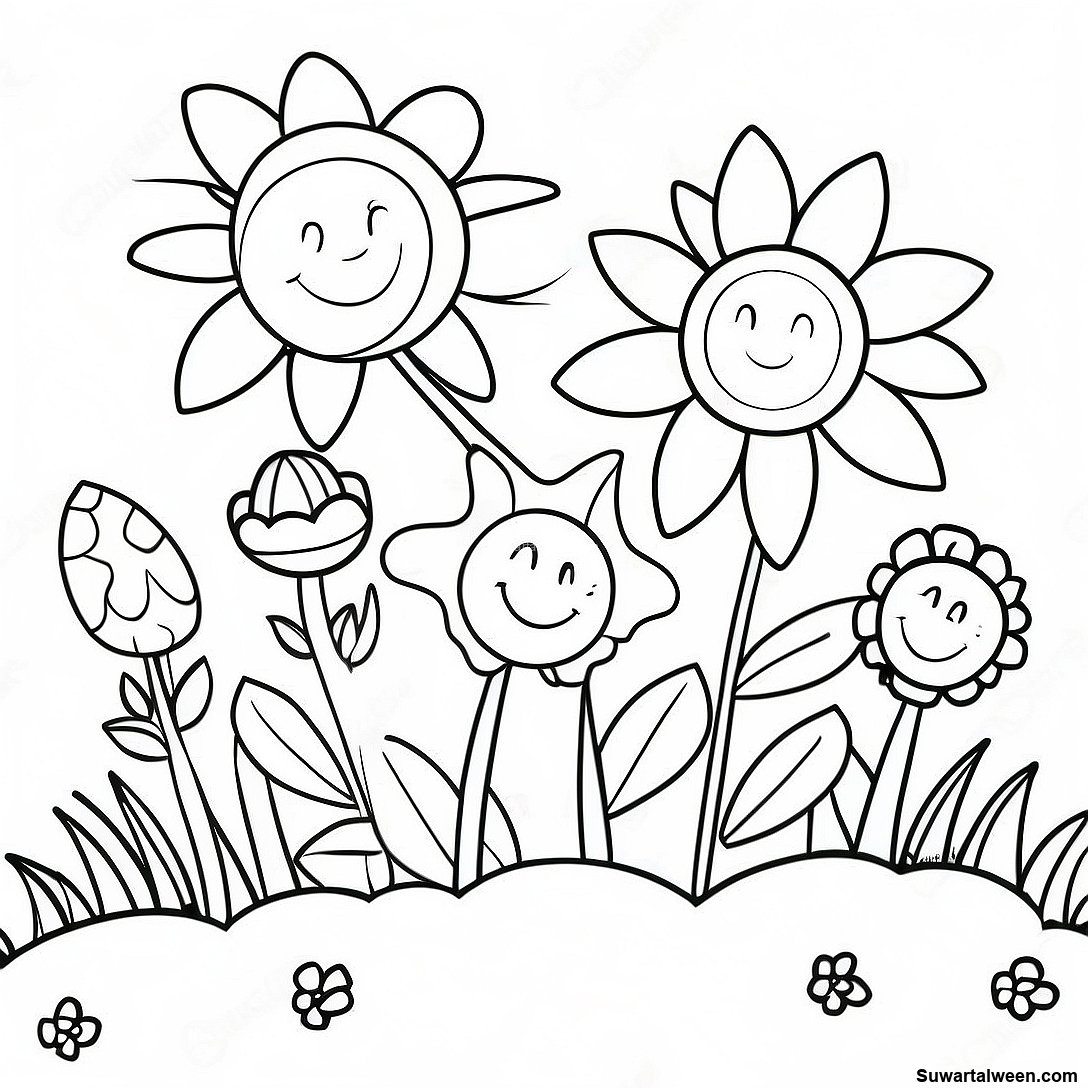 قم بتنزيل PDF القابل للطباعة لـ حديقة زهور ملونة صفحة تلوين