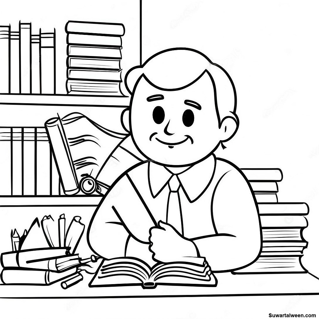 قم بتنزيل PDF القابل للطباعة لـ معلم ملهم مع الكتب صفحة تلوين