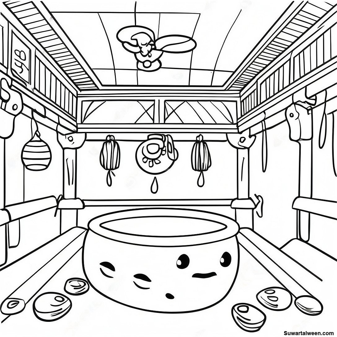 قم بتنزيل PDF القابل للطباعة لـ مشهد حمام من فيلم روح غائبة صفحة تلوين