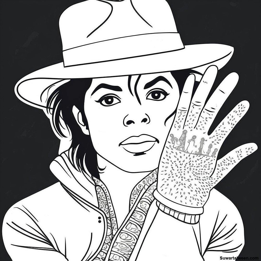قم بتنزيل PDF القابل للطباعة لـ مايكل جاكسون مع قفاز متلألئ صفحة تلوين