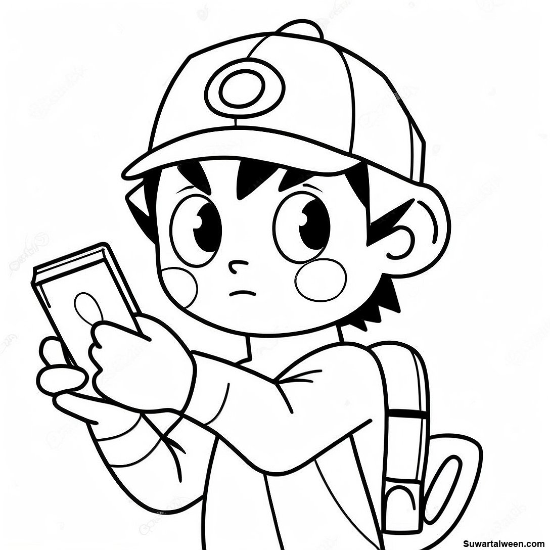 صفحة تلوين آش كيتشوم مع بوكيدكس الخاص به