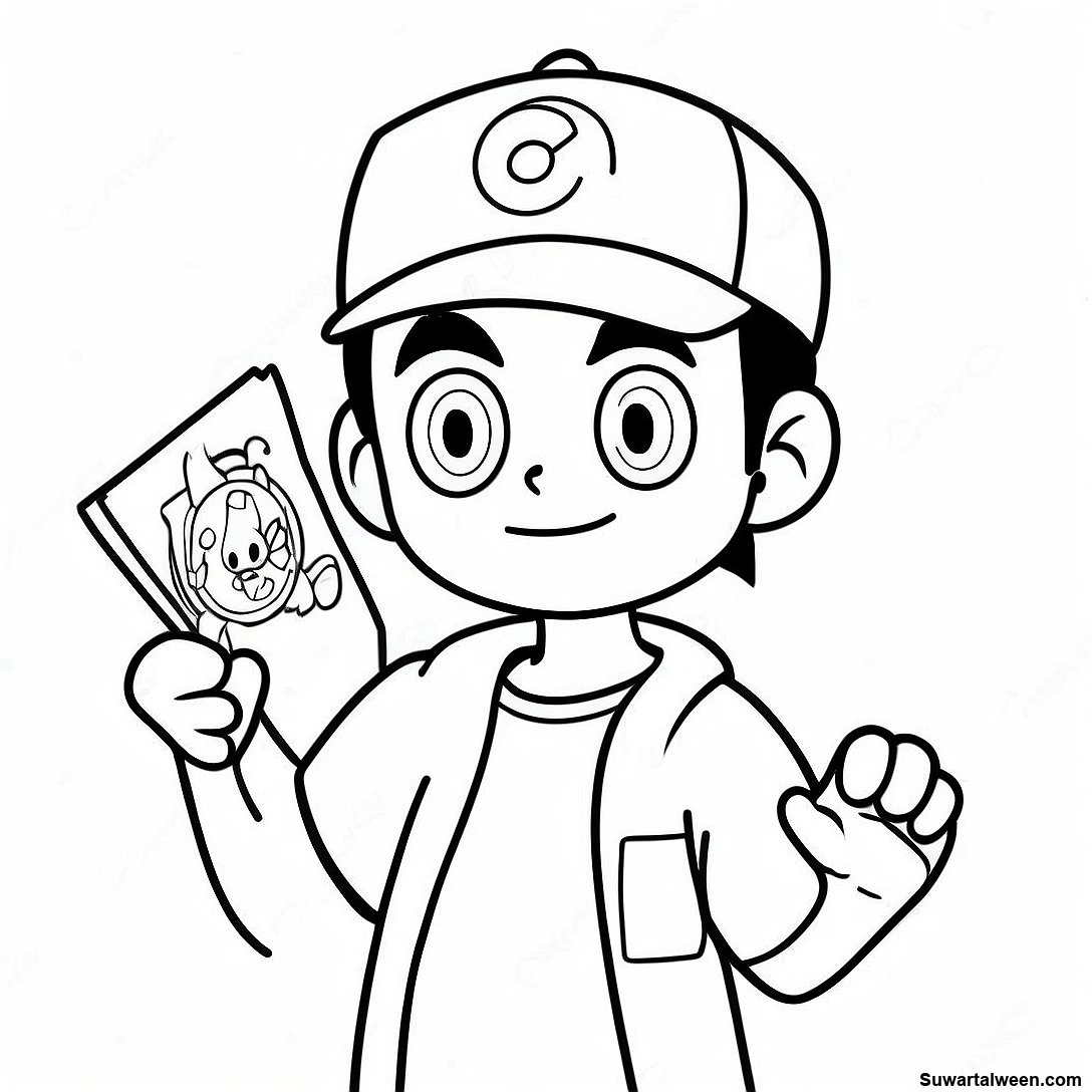 قم بتنزيل PDF القابل للطباعة لـ صفحة تلوين آش كيتشوم مع بوكيدكس الخاص به