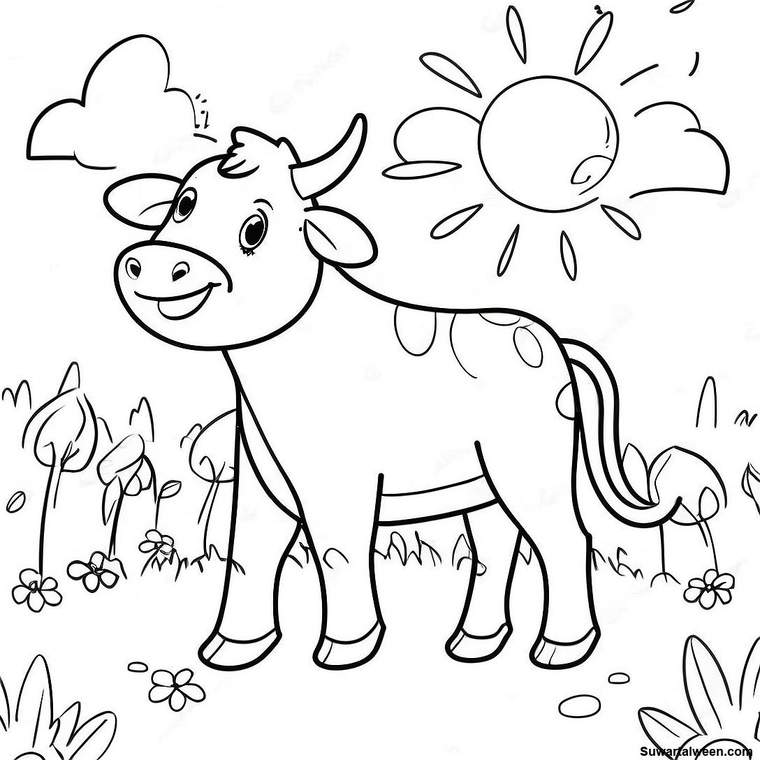 صفحة تلوين بقرة الفراولة المرحة في حقل مشمس
