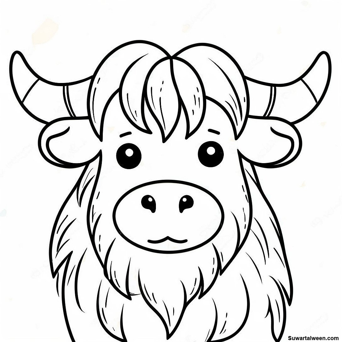 قم بتنزيل PDF القابل للطباعة لـ صفحة تلوين بقرة مرتفعات لطيفة