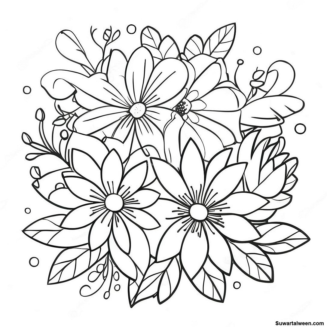 قم بتنزيل PDF القابل للطباعة لـ صفحة تلوين باقات زهور أنيقة