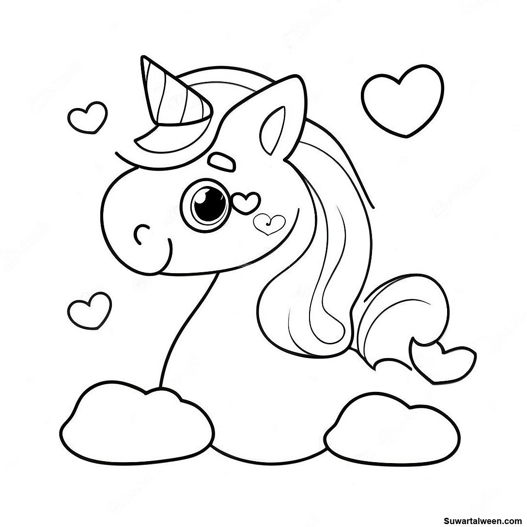 صفحة تلوين براز وحيد القرن اللطيف مع قلوب