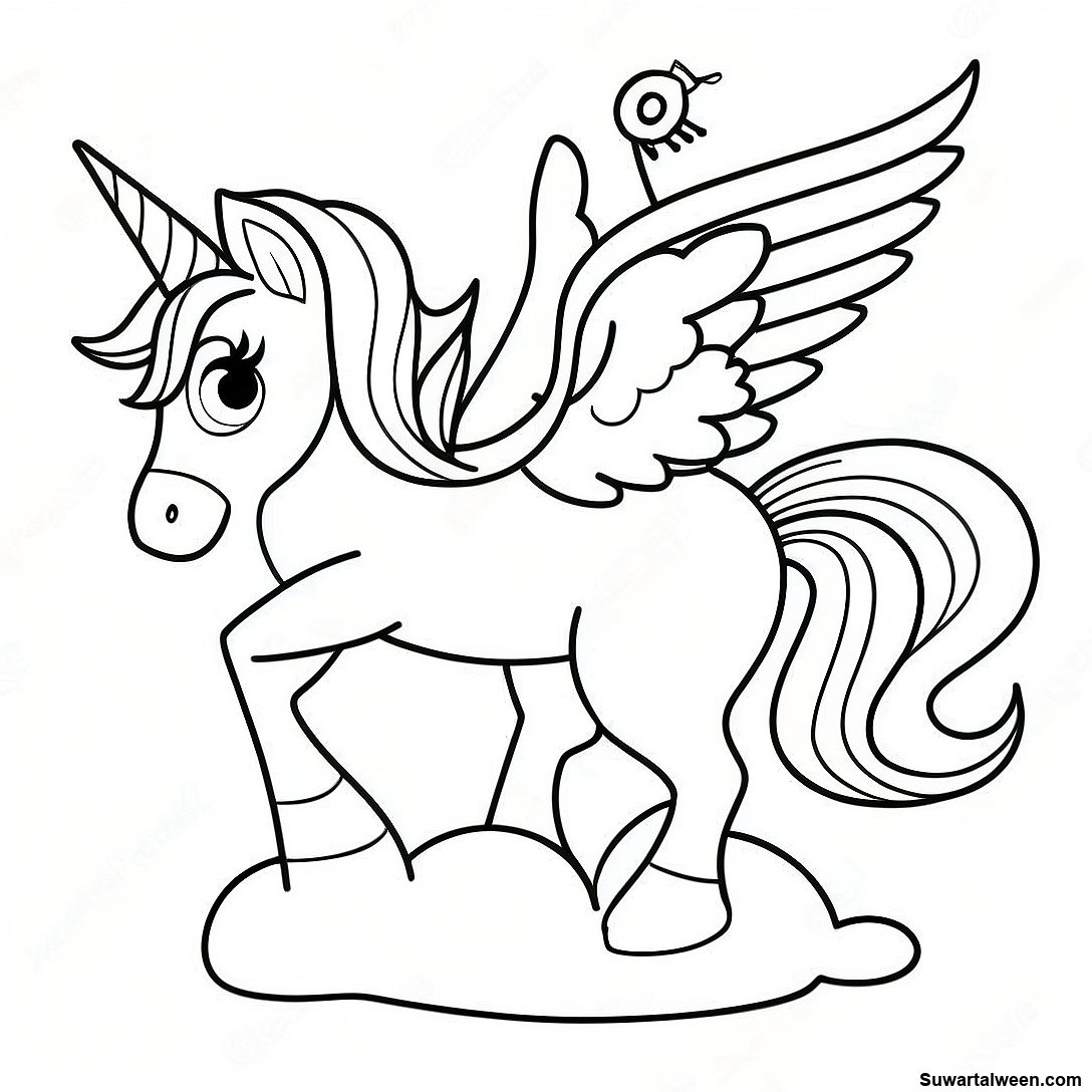 قم بتنزيل PDF القابل للطباعة لـ صفحة تلوين براز وحيد القرن قوس قزح