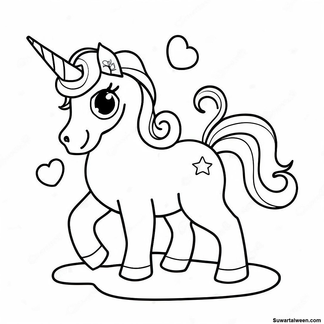 قم بتنزيل PDF القابل للطباعة لـ صفحة تلوين براز وحيد القرن قوس قزح