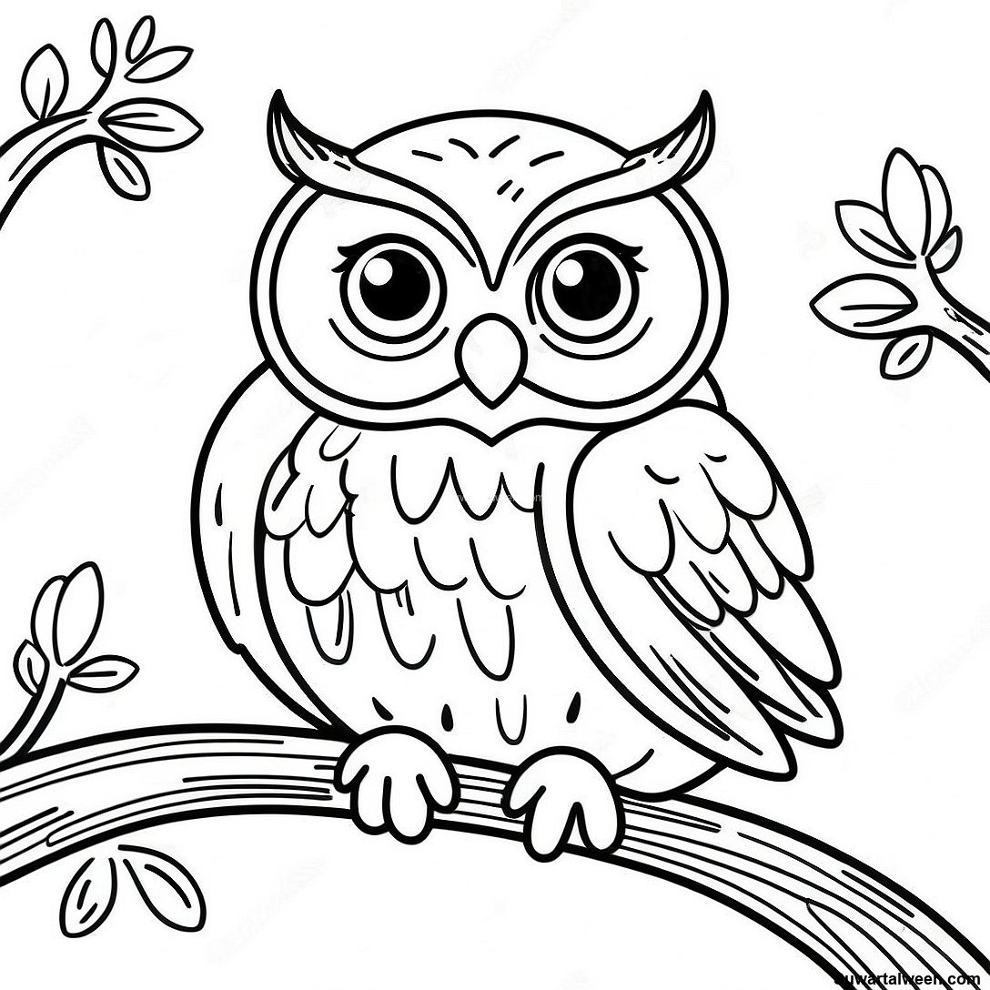 قم بتنزيل PDF القابل للطباعة لـ صفحة تلوين بومة حكيمة كبيرة جالسة على غصن