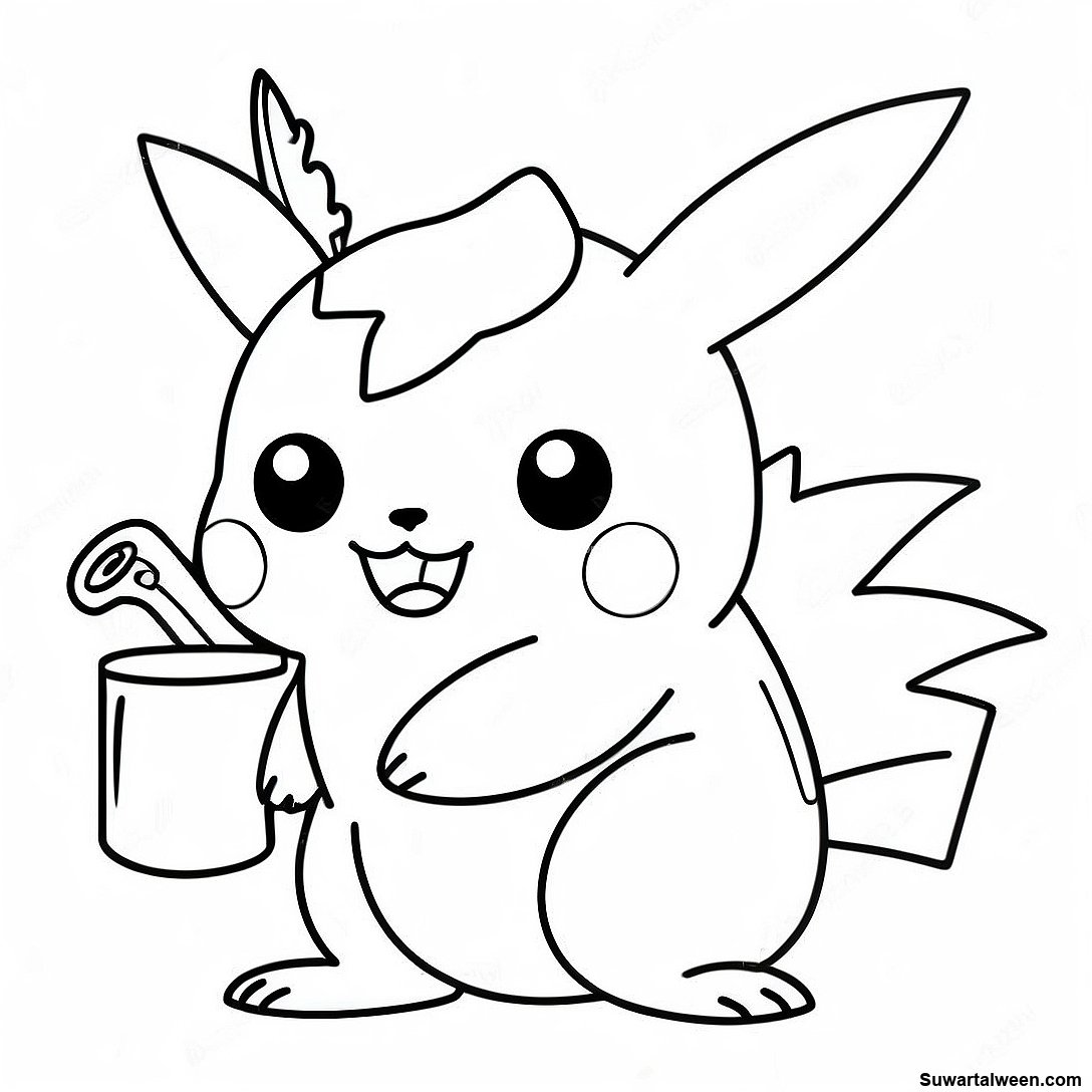 صفحة تلوين بيكاتشو يقفز في الهواء