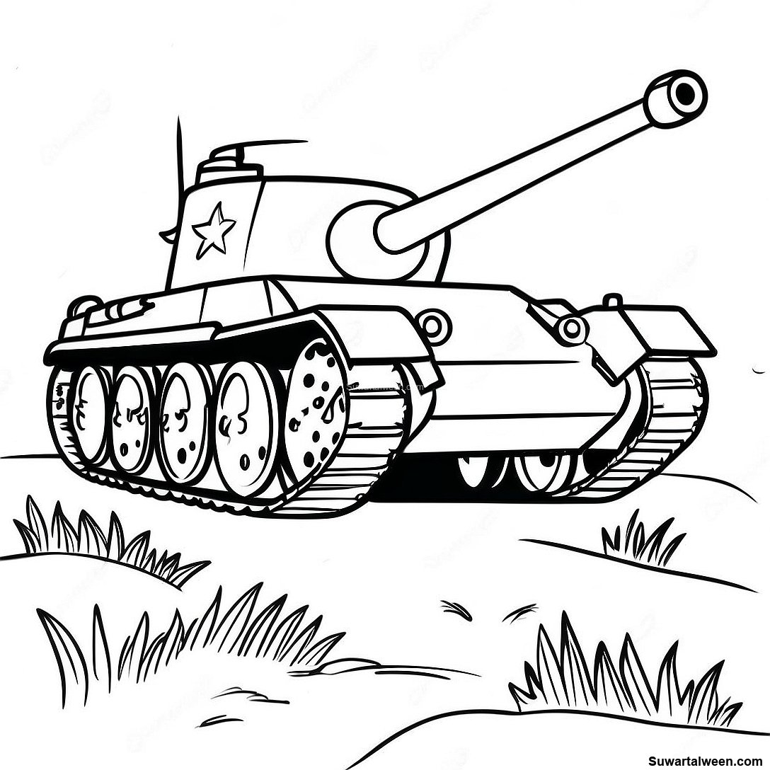 قم بتنزيل PDF القابل للطباعة لـ صفحة تلوين دبابة واقعية من الحرب العالمية الثانية