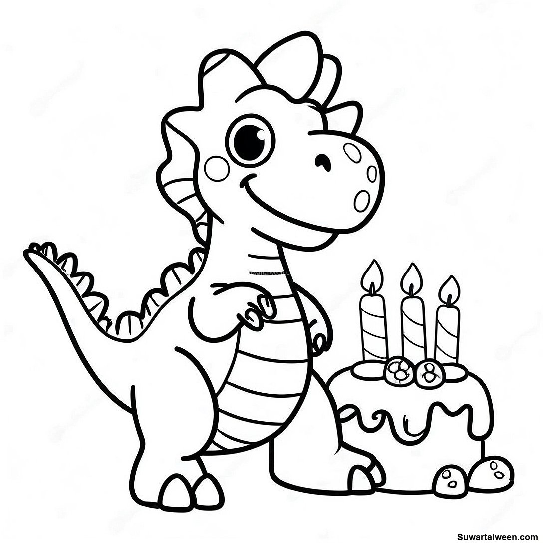 صفحة تلوين ديناصور عيد ميلاد سعيد