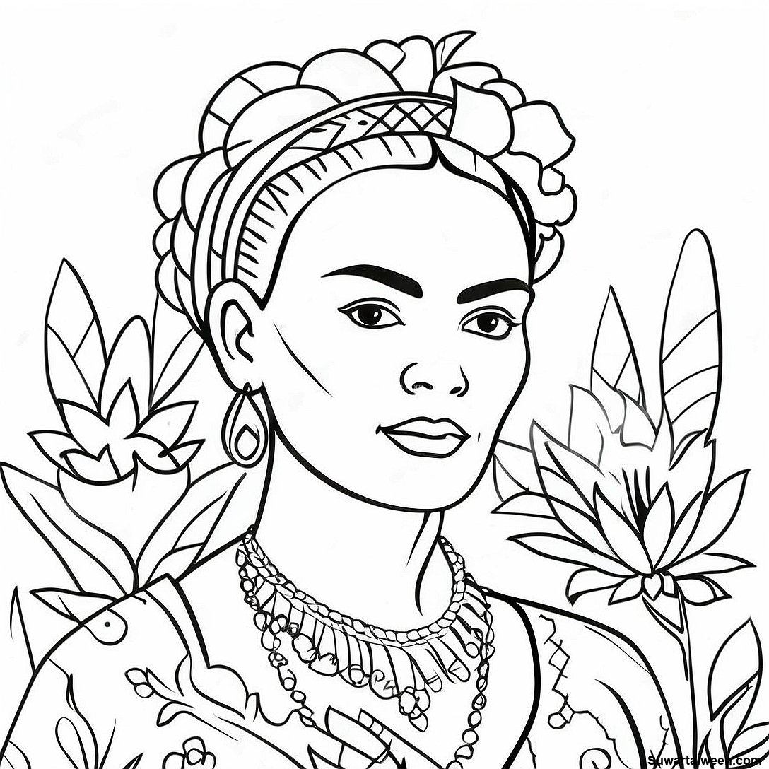 قم بتنزيل PDF القابل للطباعة لـ صفحة تلوين فريدا كاهلو
