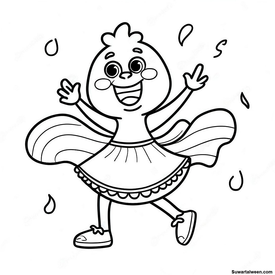 قم بتنزيل PDF القابل للطباعة لـ صفحة تلوين فتاة سعيدة ترقص
