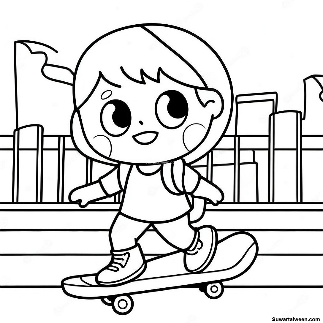 قم بتنزيل PDF القابل للطباعة لـ صفحة تلوين غاتشا لايف تومبوي مع لوح التزلج