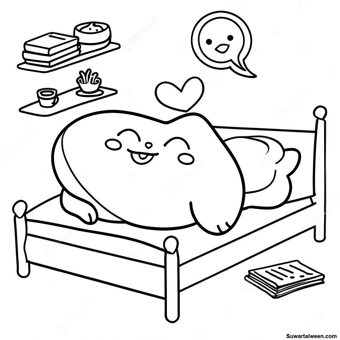 قم بتنزيل PDF القابل للطباعة لـ صفحة تلوين غوديتاما كسول في السرير