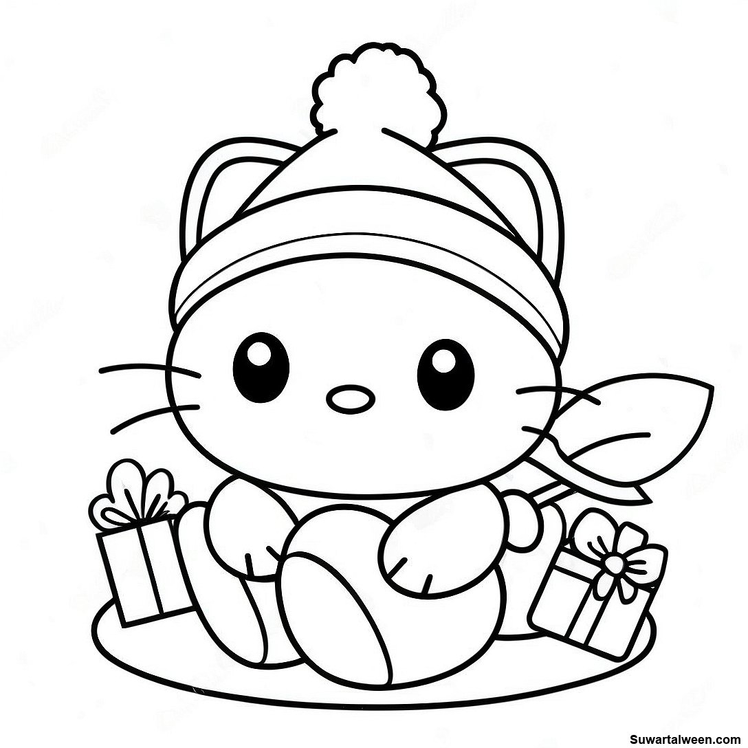 قم بتنزيل PDF القابل للطباعة لـ صفحة تلوين هالو كيتي في عيد الميلاد