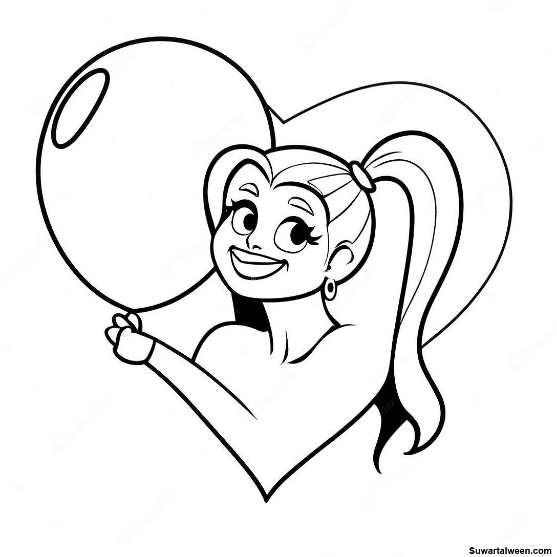 صفحة تلوين هارلي كوين مع بالون على شكل قلب