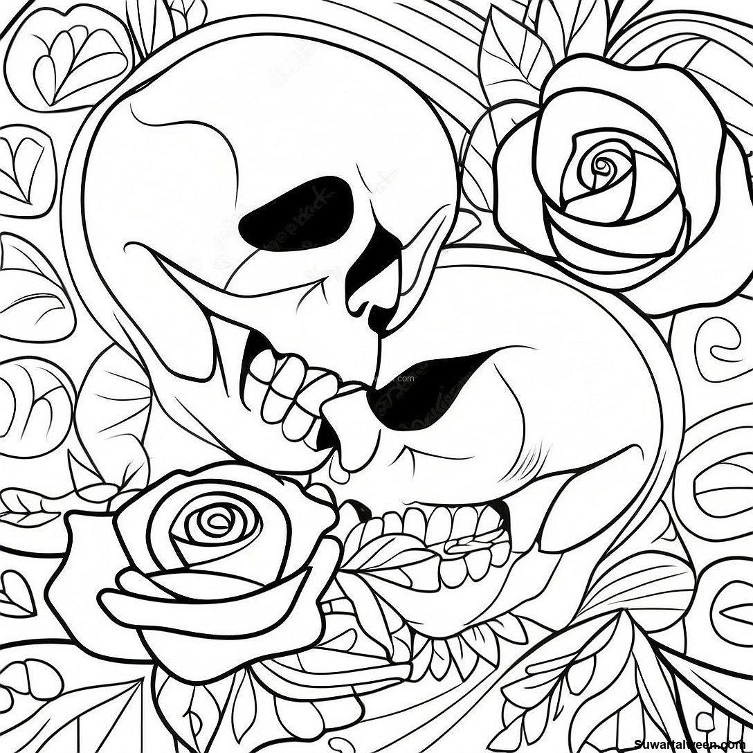قم بتنزيل PDF القابل للطباعة لـ صفحة تلوين جماجم وزهور الحب