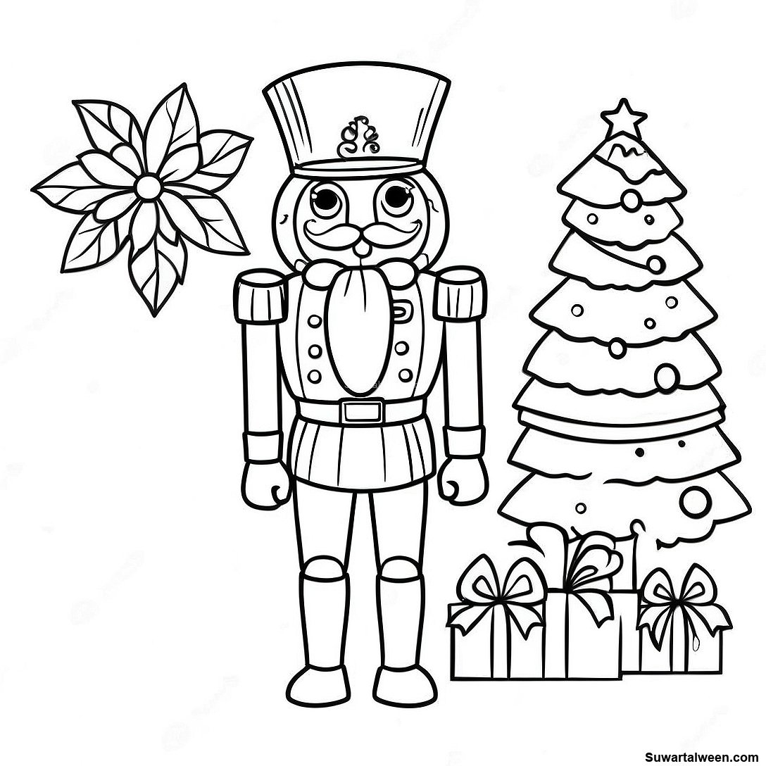 قم بتنزيل PDF القابل للطباعة لـ صفحة تلوين جندي الكراك مع شجرة عيد الميلاد