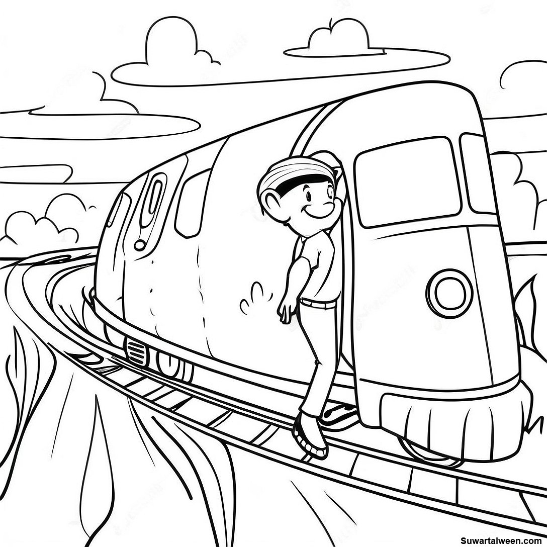 صفحة تلوين جيك يتزلج على قطار