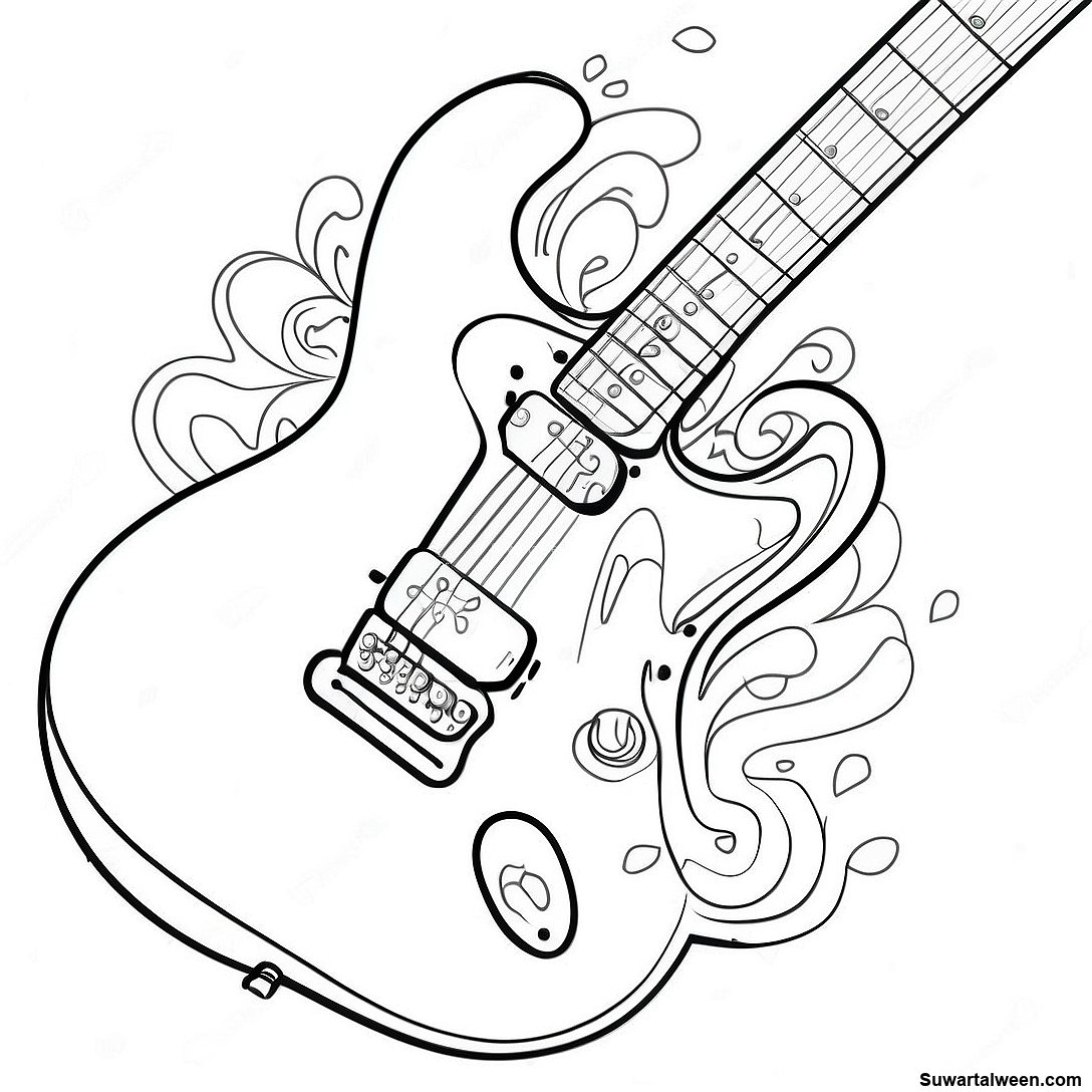 قم بتنزيل PDF القابل للطباعة لـ صفحة تلوين جيتار كهربائي في العمل