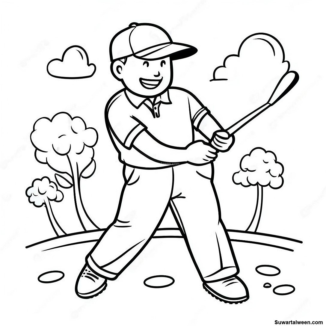 صفحة تلوين لاعب جولف سعيد يتأرجح بالعصا