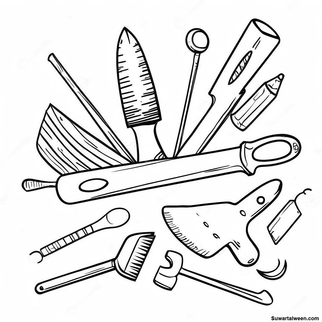 صفحة تلوين الأدوات اليدوية الملونة