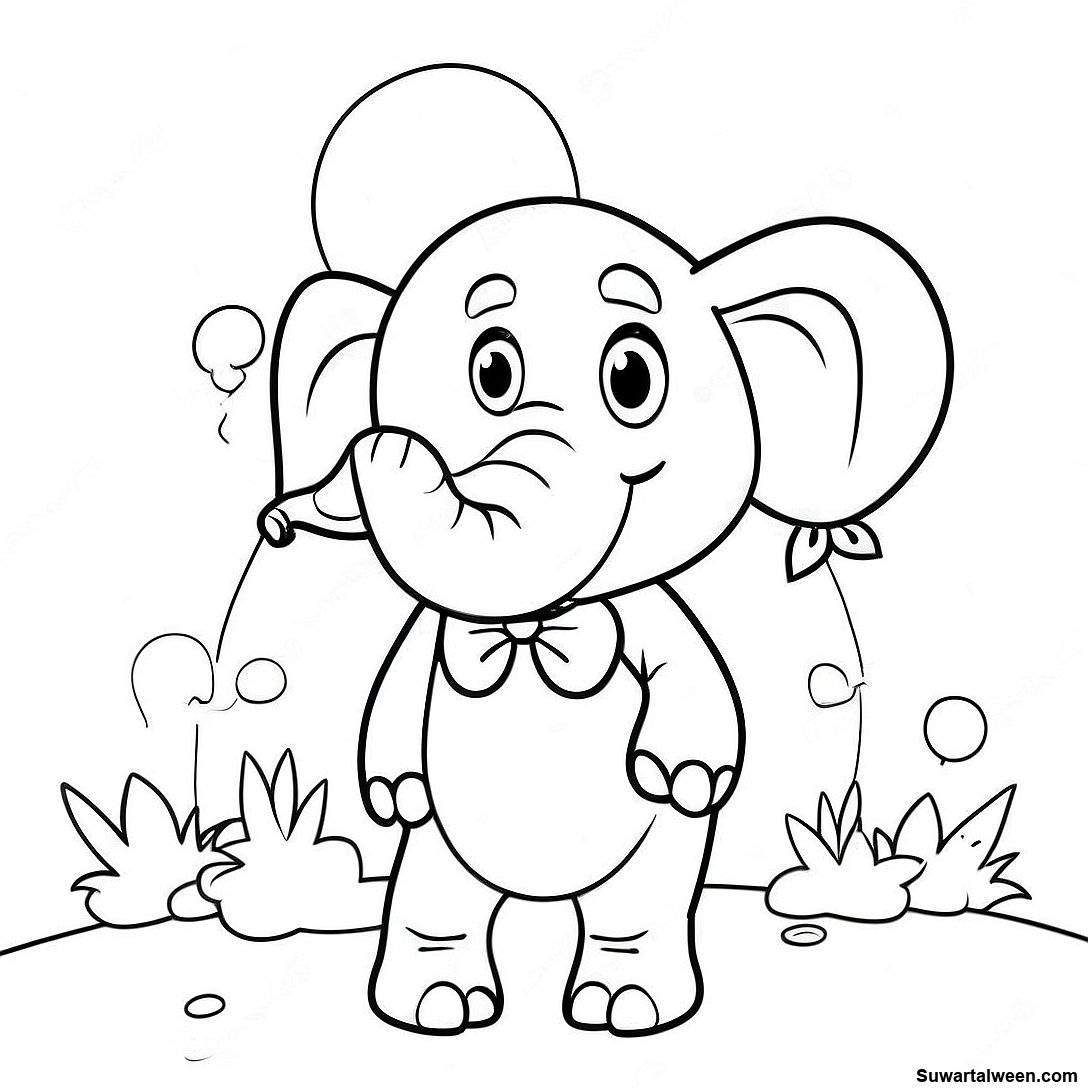 قم بتنزيل PDF القابل للطباعة لـ صفحة تلوين الفيل السكير المضحك مع البالونات
