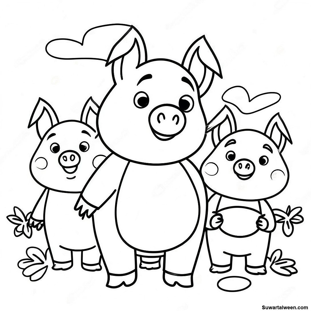 صفحة تلوين الخنازير الثلاثة الصغيرة السعيدة