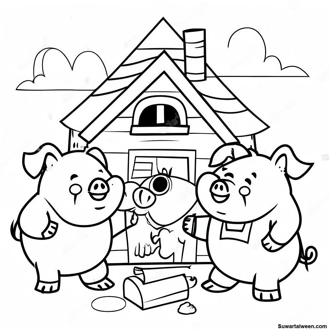 قم بتنزيل PDF القابل للطباعة لـ صفحة تلوين الخنازير الثلاثة الصغيرة تبني منزلاً