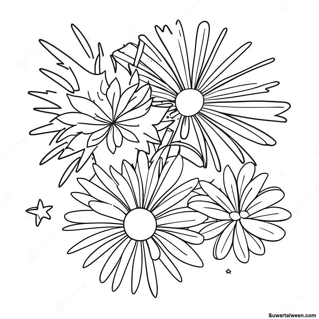 صفحة تلوين الألعاب النارية في سماء يوليو الليلية