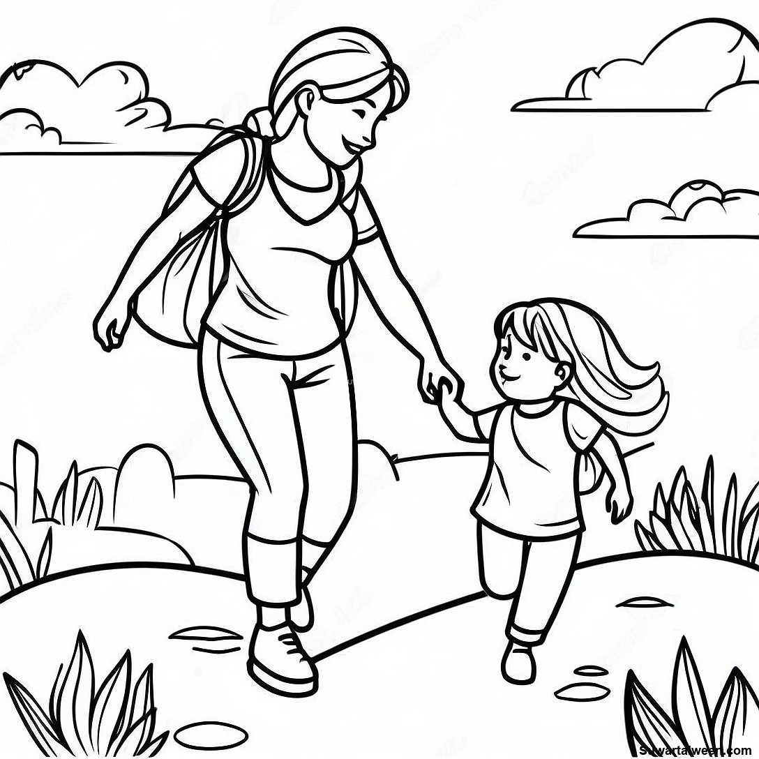 قم بتنزيل PDF القابل للطباعة لـ صفحة تلوين الأم المغامرة وابنتها