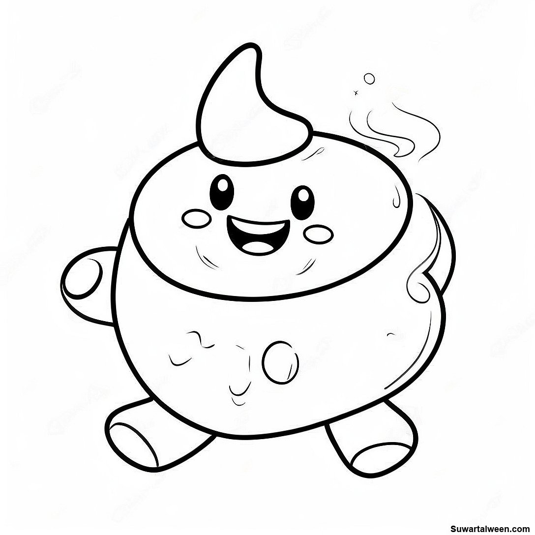 قم بتنزيل PDF القابل للطباعة لـ صفحة تلوين المارشميلو السعيد مع وجه مبتسم
