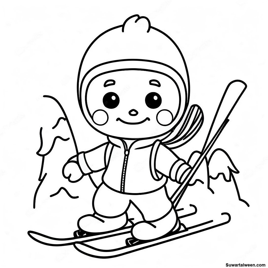 قم بتنزيل PDF القابل للطباعة لـ صفحة تلوين المتزلج الكرتوني اللطيف