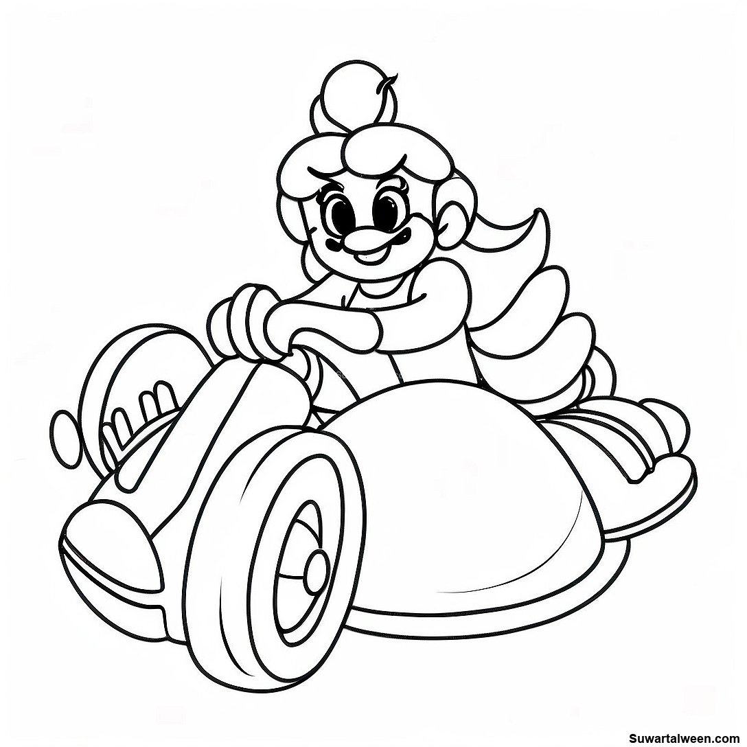 قم بتنزيل PDF القابل للطباعة لـ صفحة تلوين الأميرة بيتش في سباق ماريو كارت