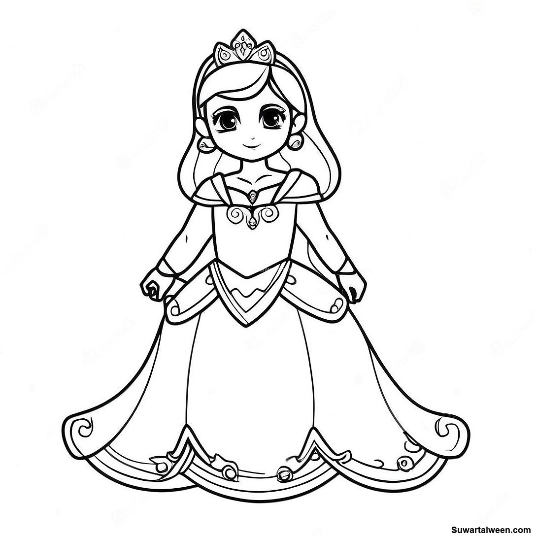 قم بتنزيل PDF القابل للطباعة لـ صفحة تلوين الأميرة زيلدا بفستان جميل