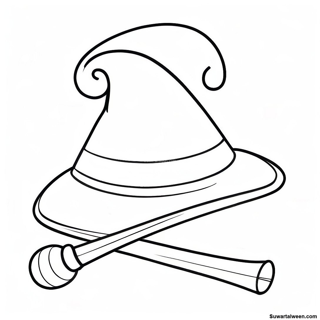 صفحة تلوين القبعة السحرية والعصا