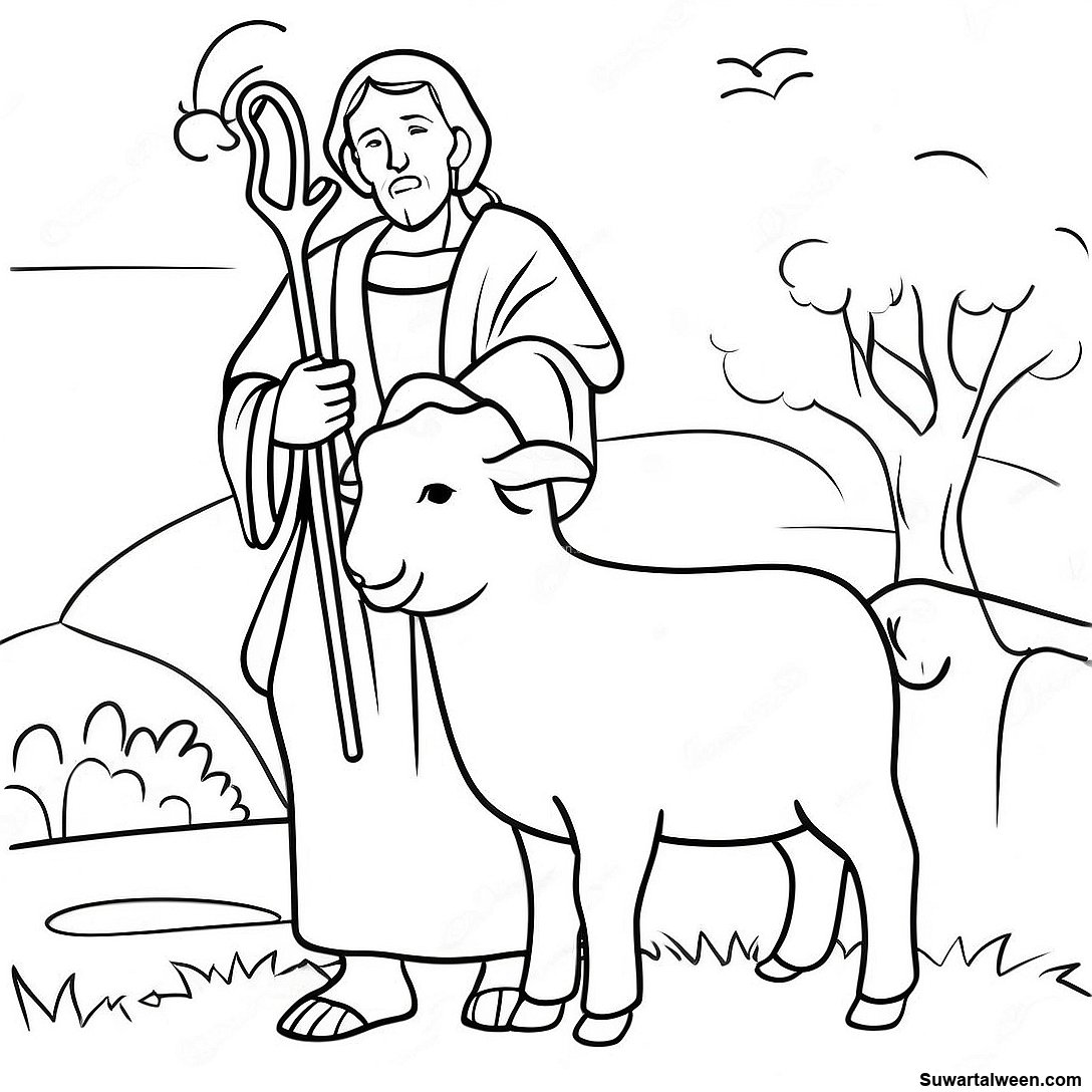 صفحة تلوين الراعي الصالح اللطيف مع الأغنام