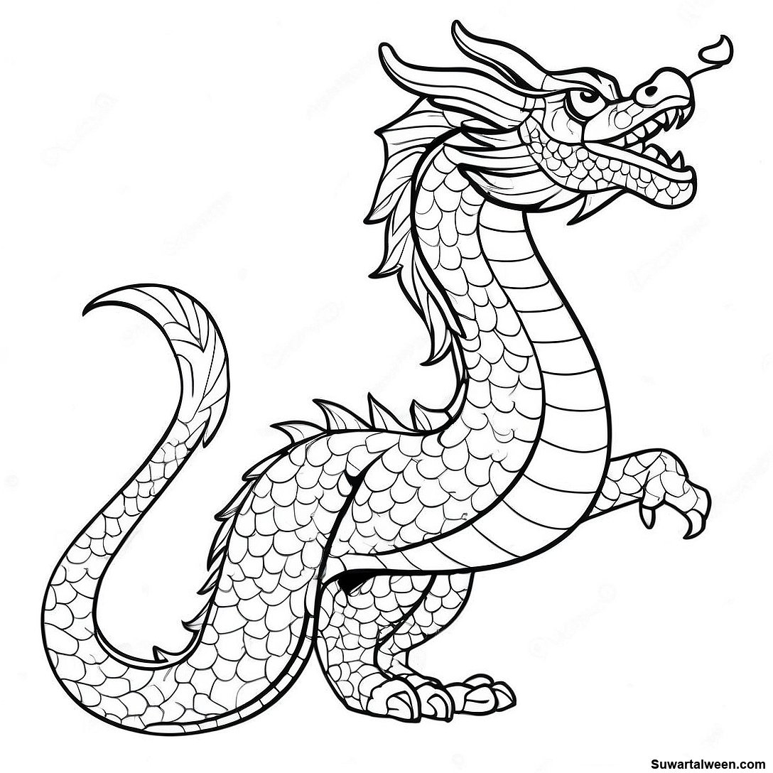 صفحة تلوين التنين الصيني المهيب