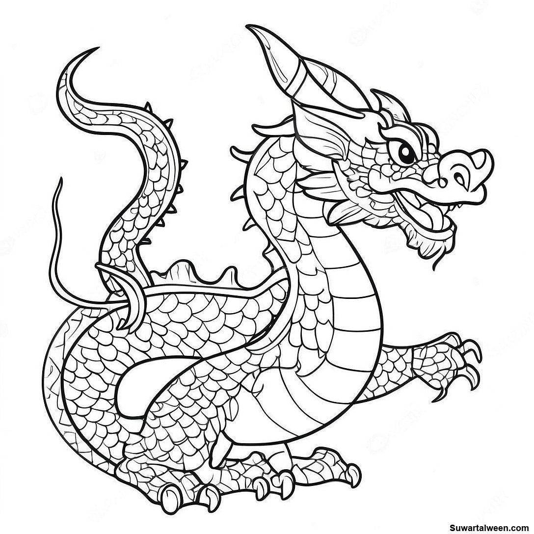 قم بتنزيل PDF القابل للطباعة لـ صفحة تلوين التنين الصيني الملون