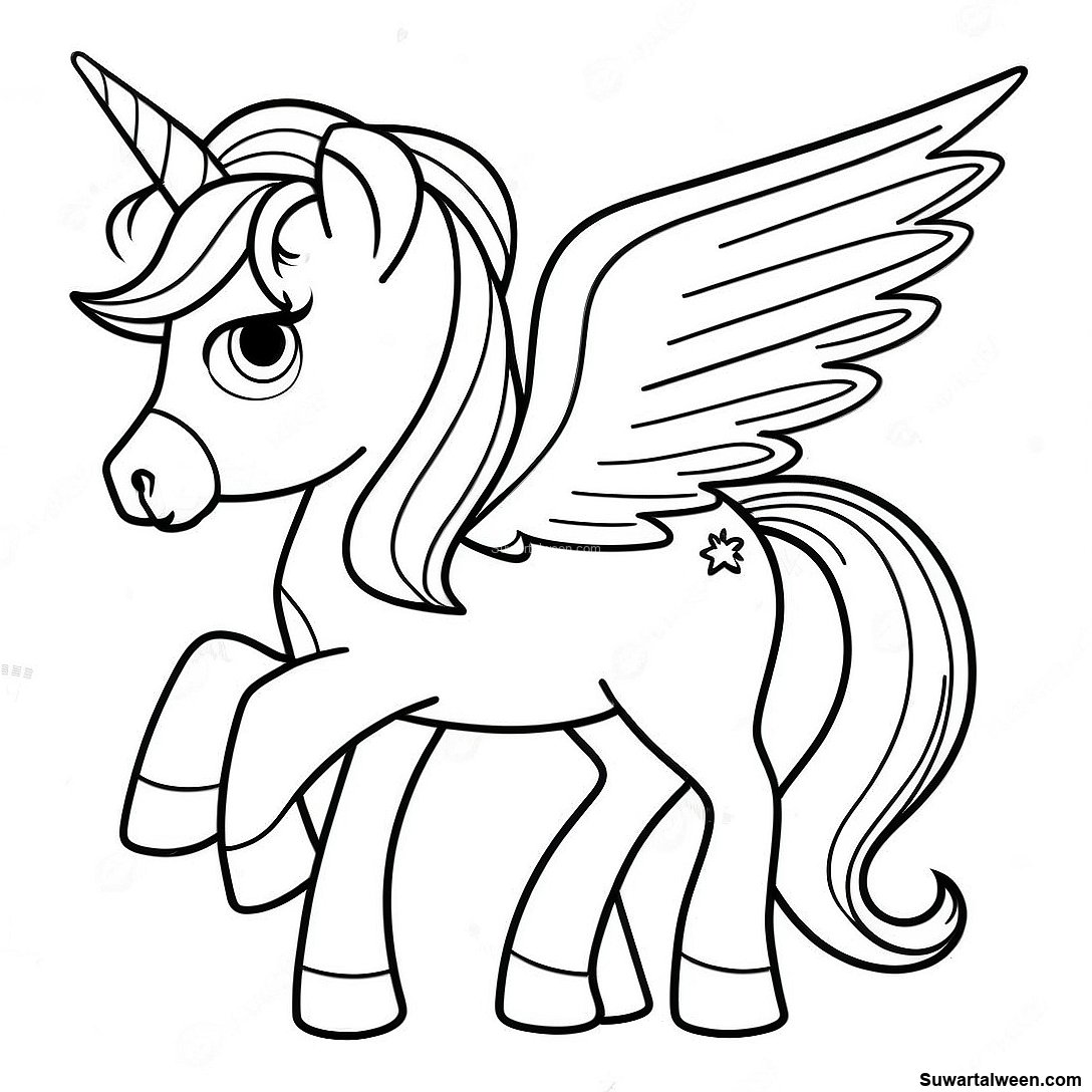 صفحة تلوين يونيكورن أنيق مع شعر لامع