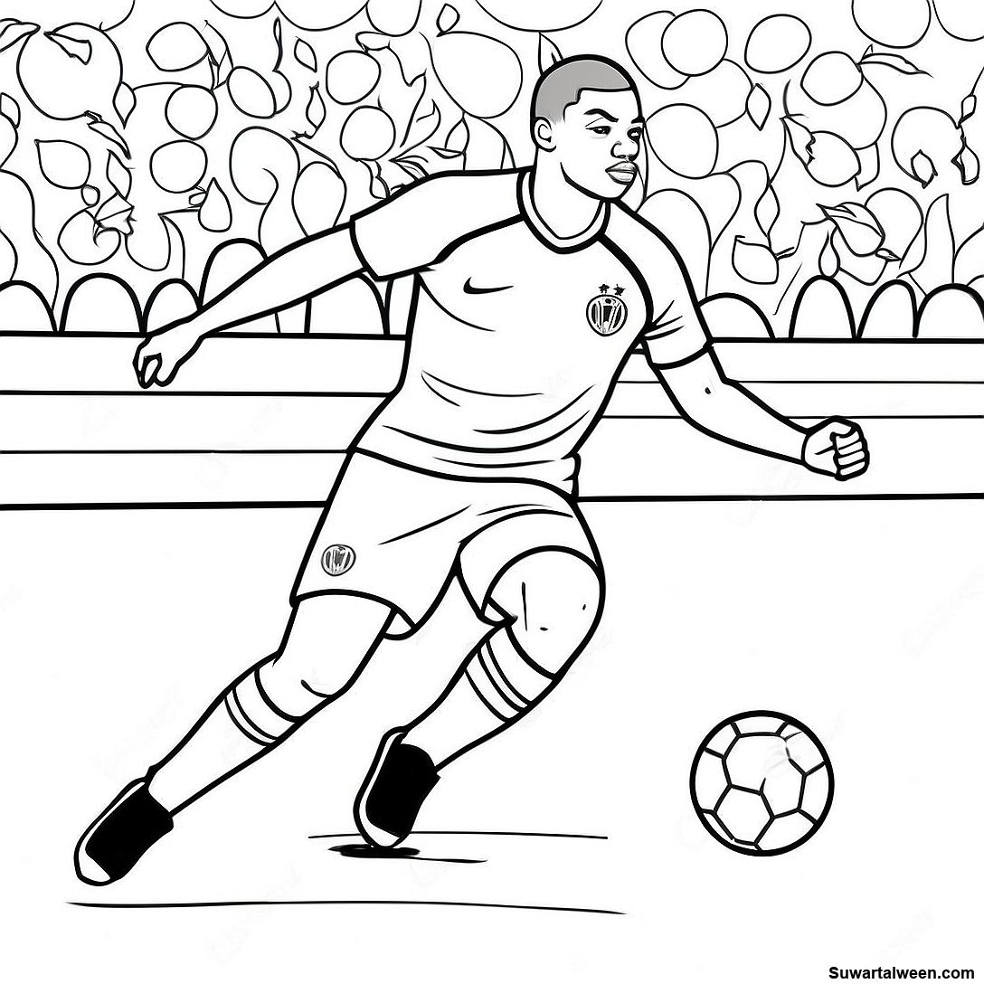 قم بتنزيل PDF القابل للطباعة لـ صفحة تلوين مبابي وهو يراوغ الكرة