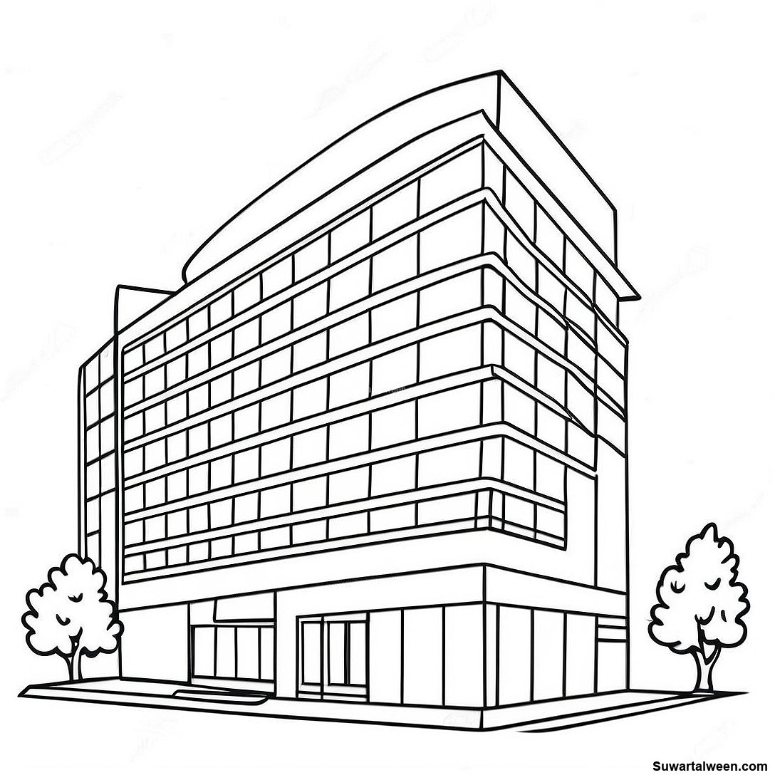 قم بتنزيل PDF القابل للطباعة لـ صفحة تلوين مبنى مكتب حديث