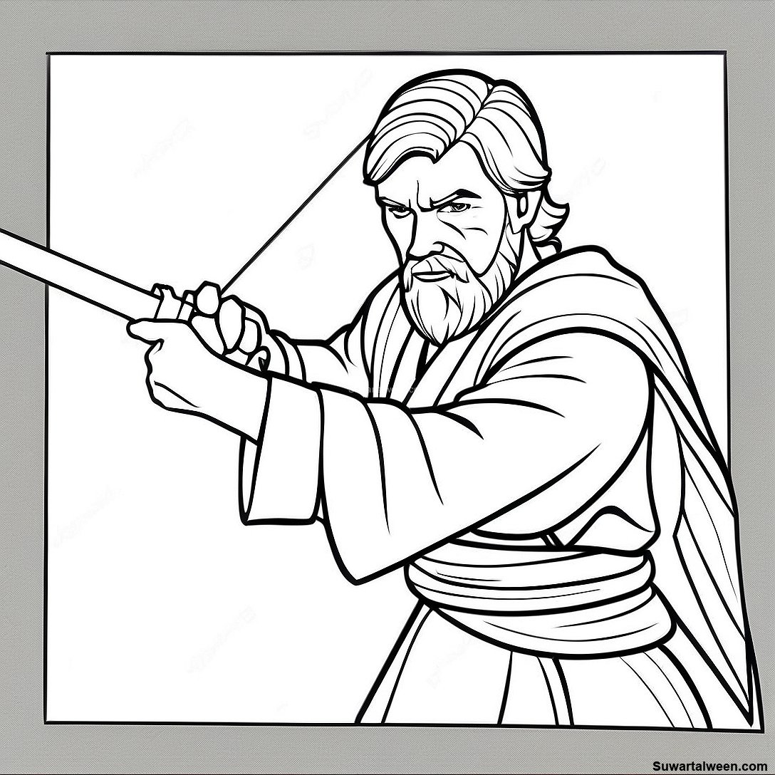 صفحة تلوين مبارزة أوبى وان كينوبي بسيف الضوء
