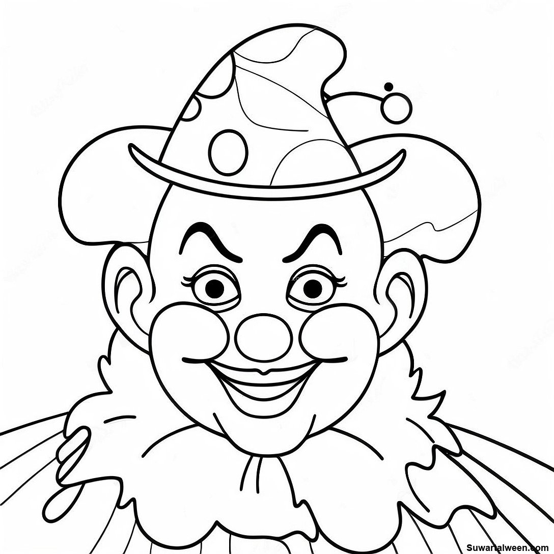 قم بتنزيل PDF القابل للطباعة لـ صفحة تلوين مهرج سخيف يرتدي قبعة