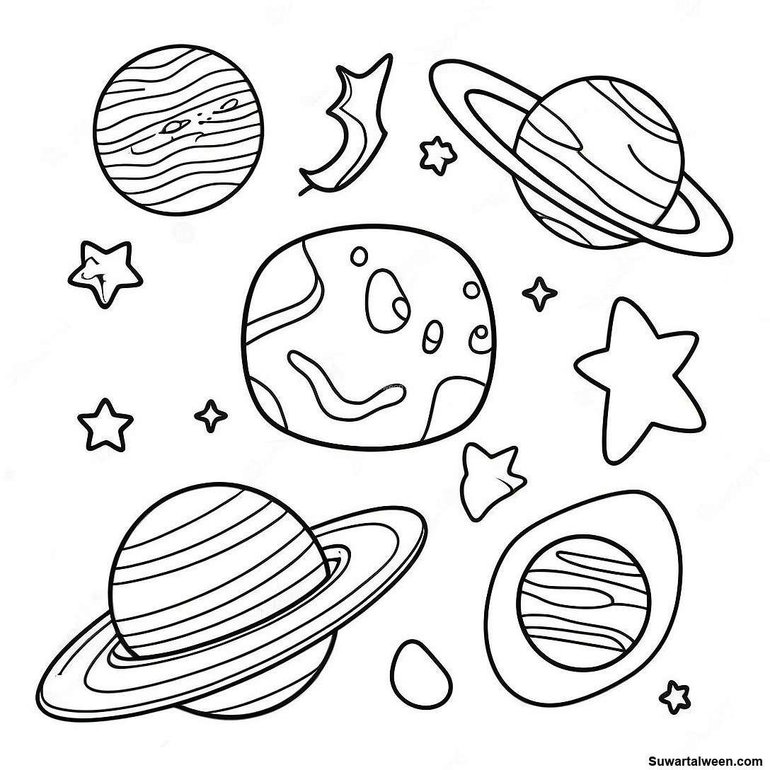 قم بتنزيل PDF القابل للطباعة لـ صفحة تلوين مجرة غريبة مع كواكب