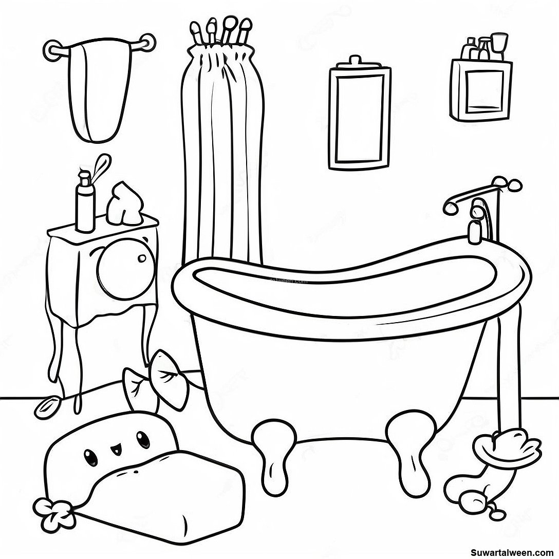 صفحة تلوين ملحقات الحمام اللطيفة
