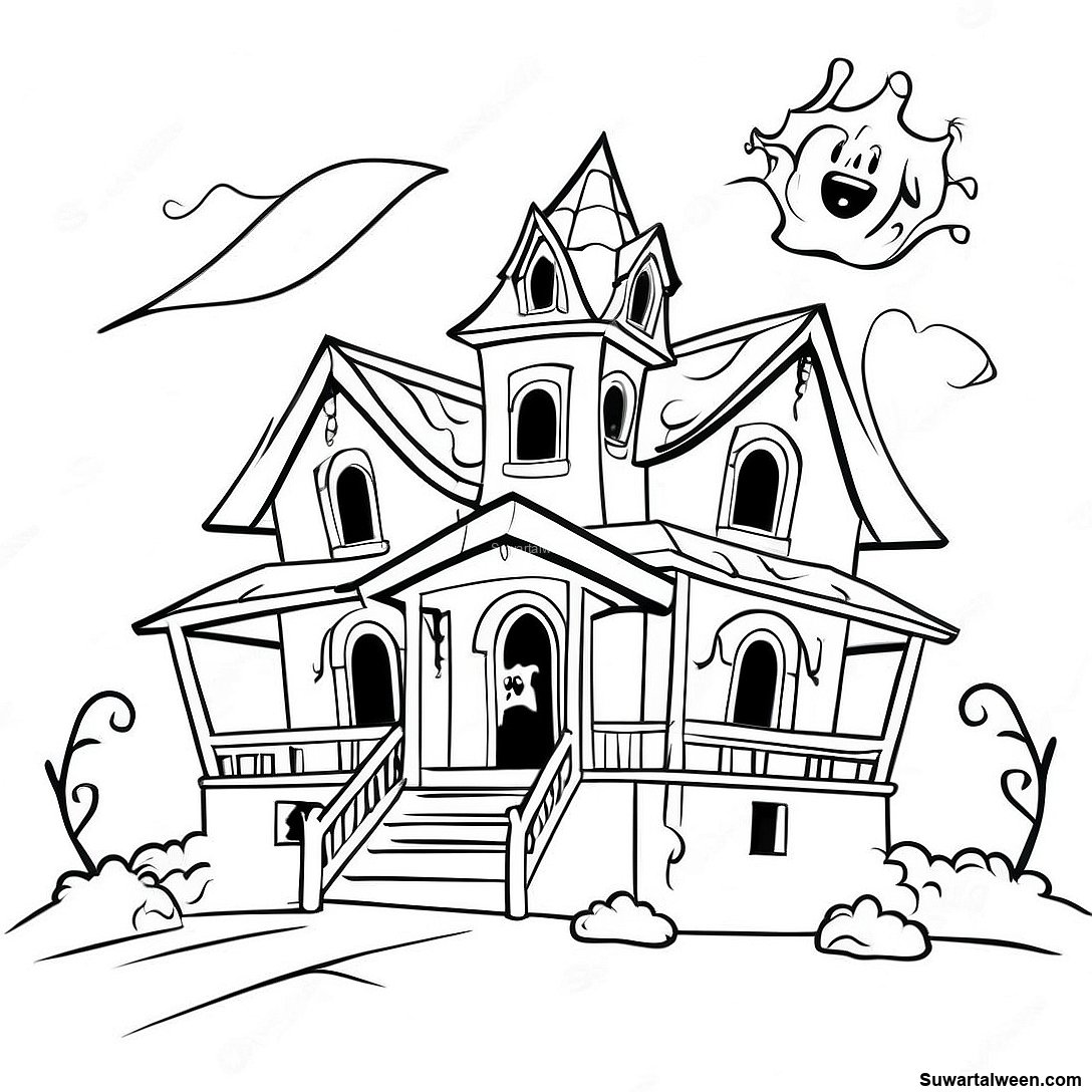 قم بتنزيل PDF القابل للطباعة لـ صفحة تلوين منزل مسكون مع صرخة
