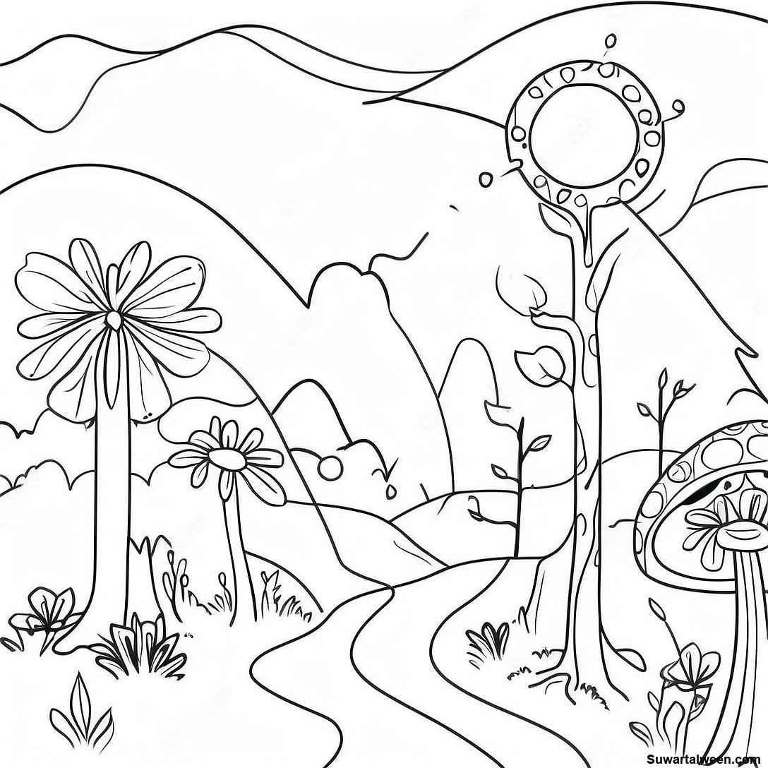قم بتنزيل PDF القابل للطباعة لـ صفحة تلوين منظر خيالي غريب للبالغين